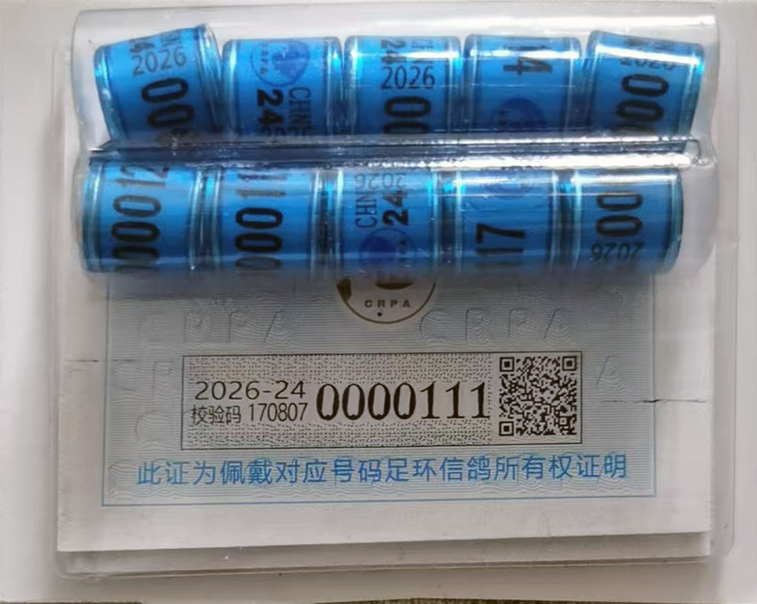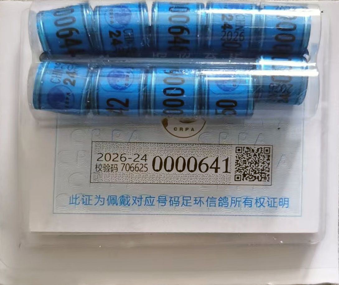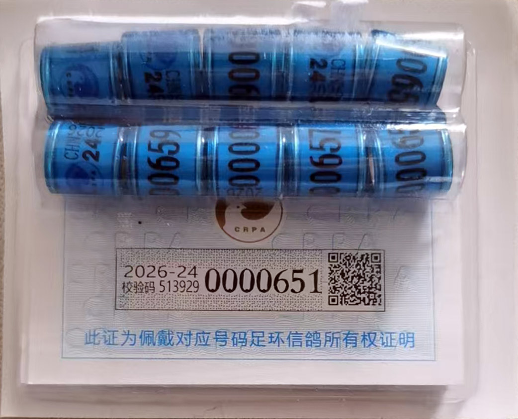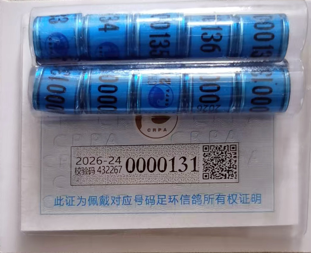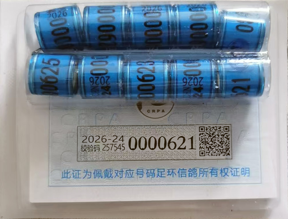 2026年云南省信鸽足环公益拍卖已上线,竞拍截止时间:2025年12月29日晚上20点 本次公益拍卖采用分号段结标的方式进行,每10枚足环为一个标段,分20个标段完成。 号段为2026-24-0000101-0000200 共10组;2026-24-0000601-0000700 共10组。