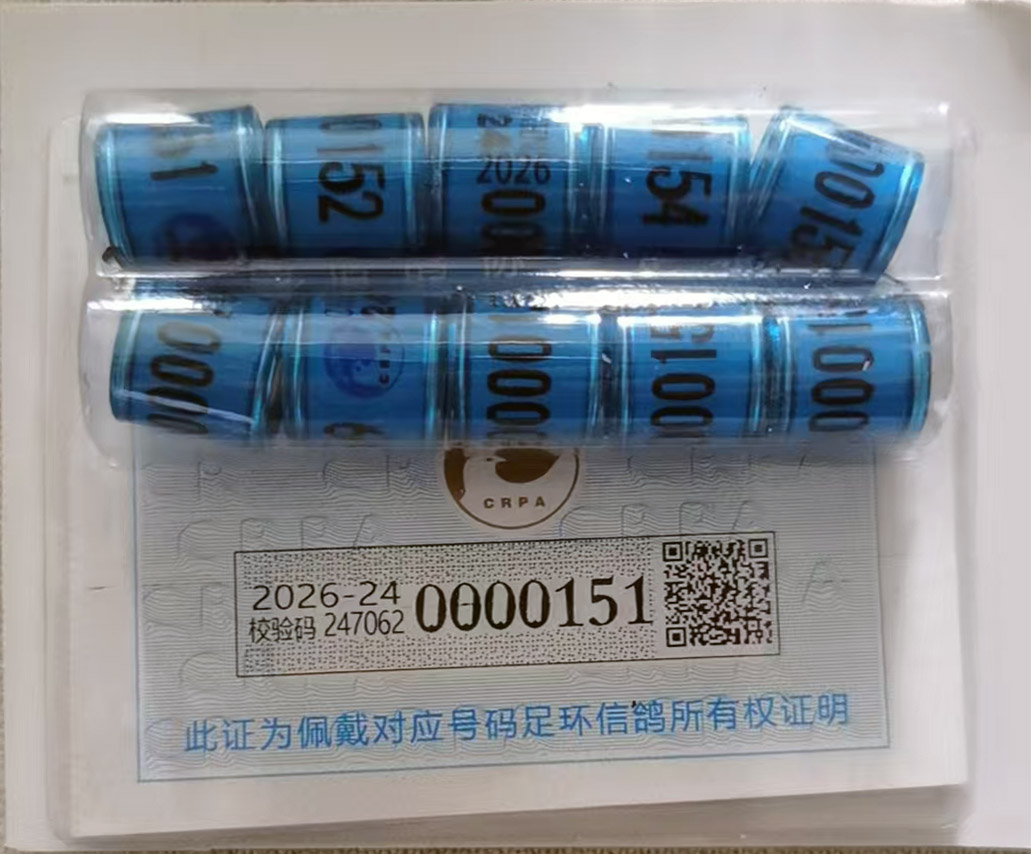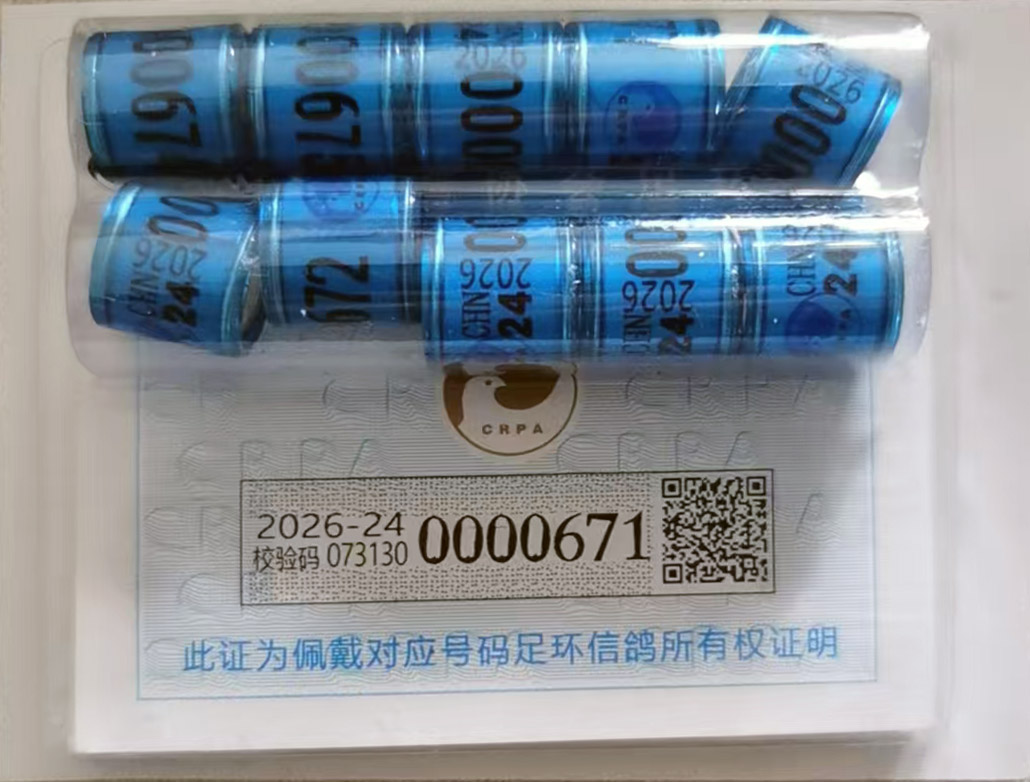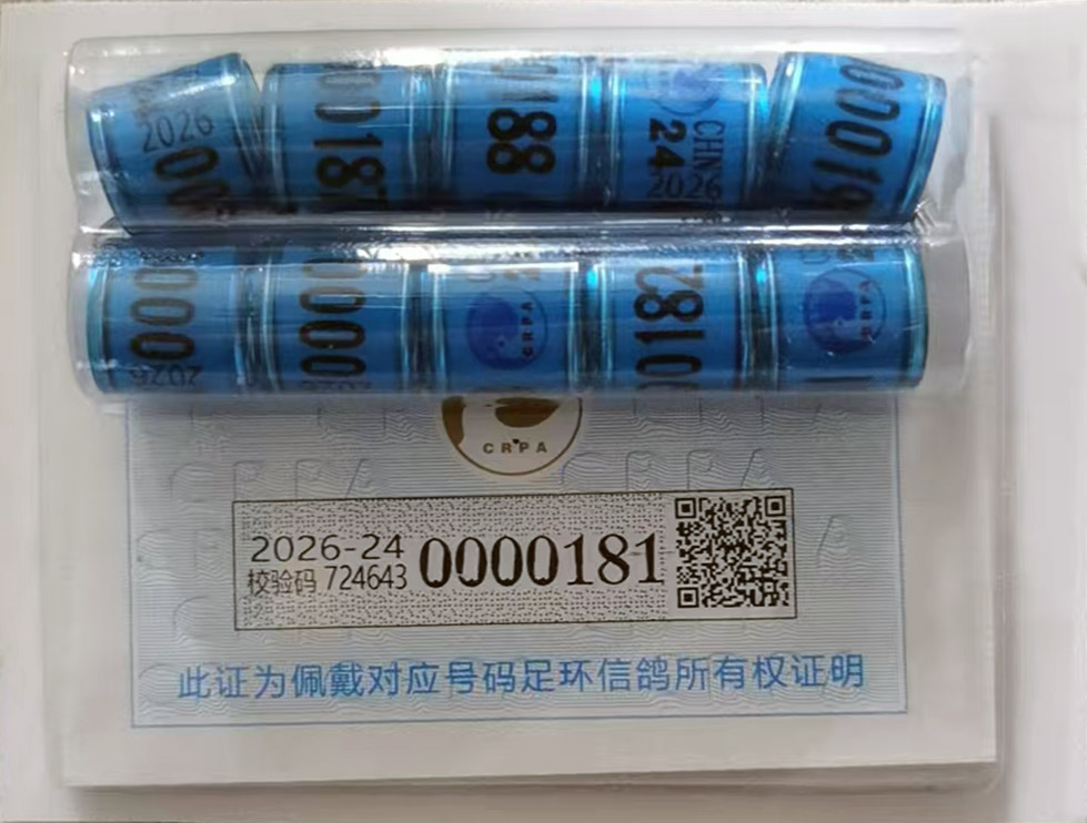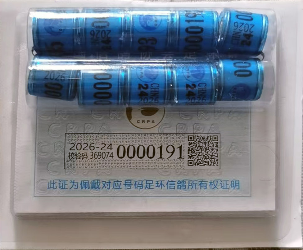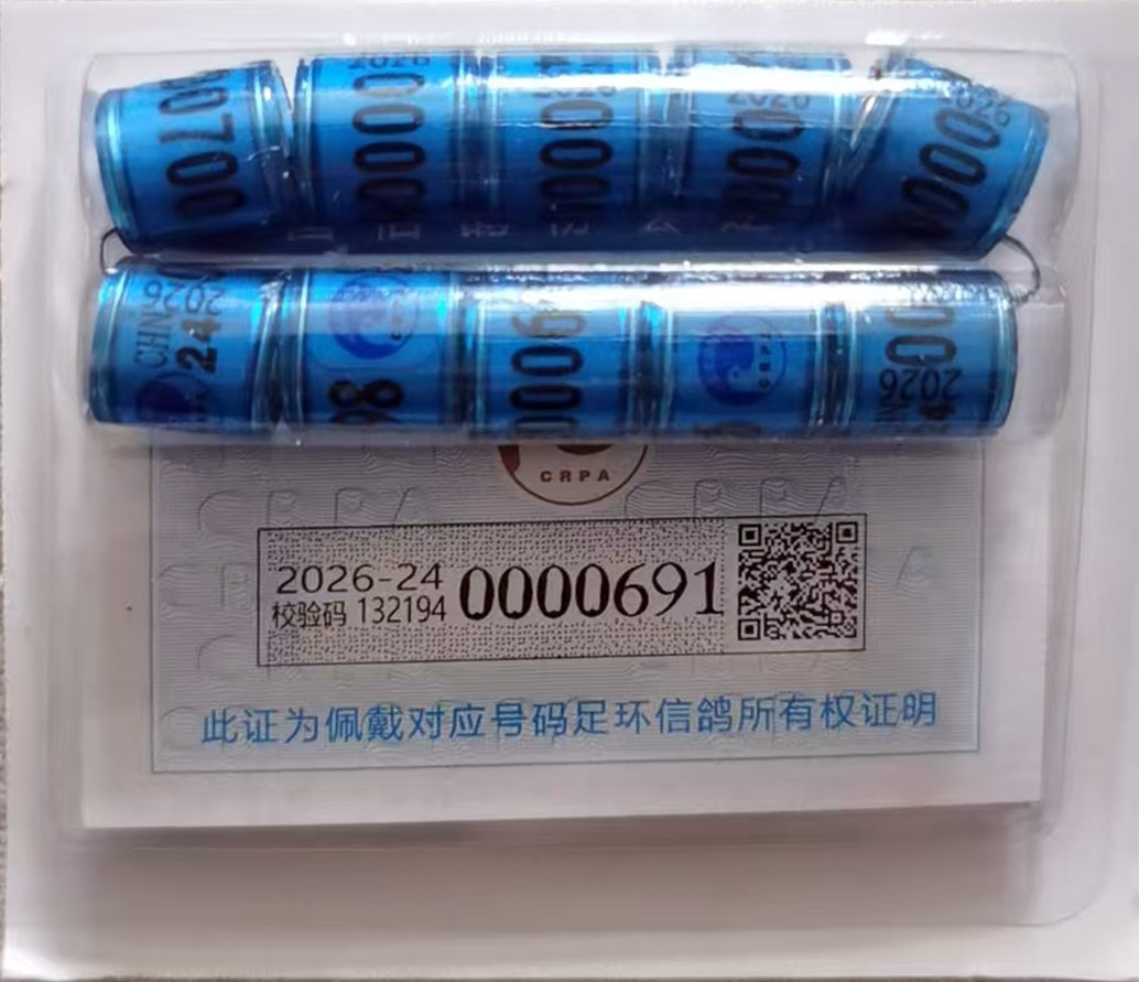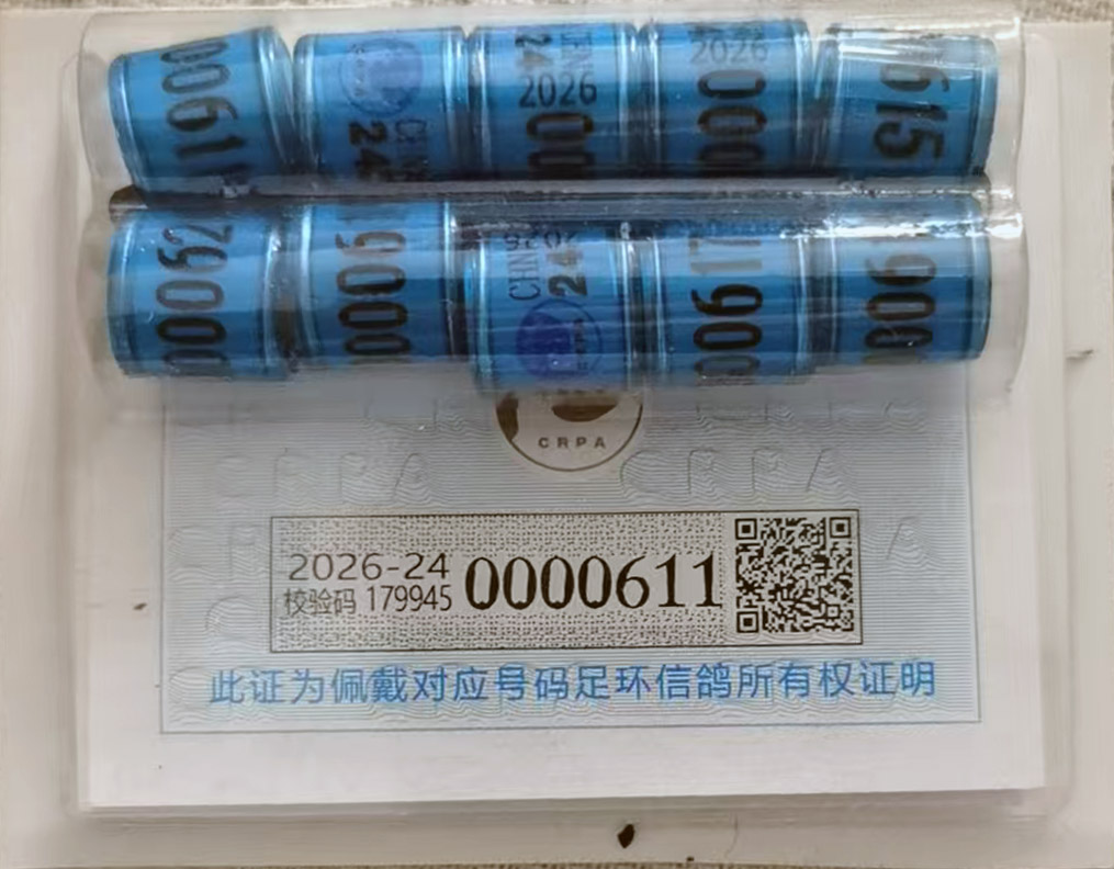 2026年云南省信鸽足环公益拍卖已上线,竞拍截止时间:2025年12月29日晚上20点 本次公益拍卖采用分号段结标的方式进行,每10枚足环为一个标段,分20个标段完成。 号段为2026-24-0000101-0000200 共10组;2026-24-0000601-0000700 共10组。